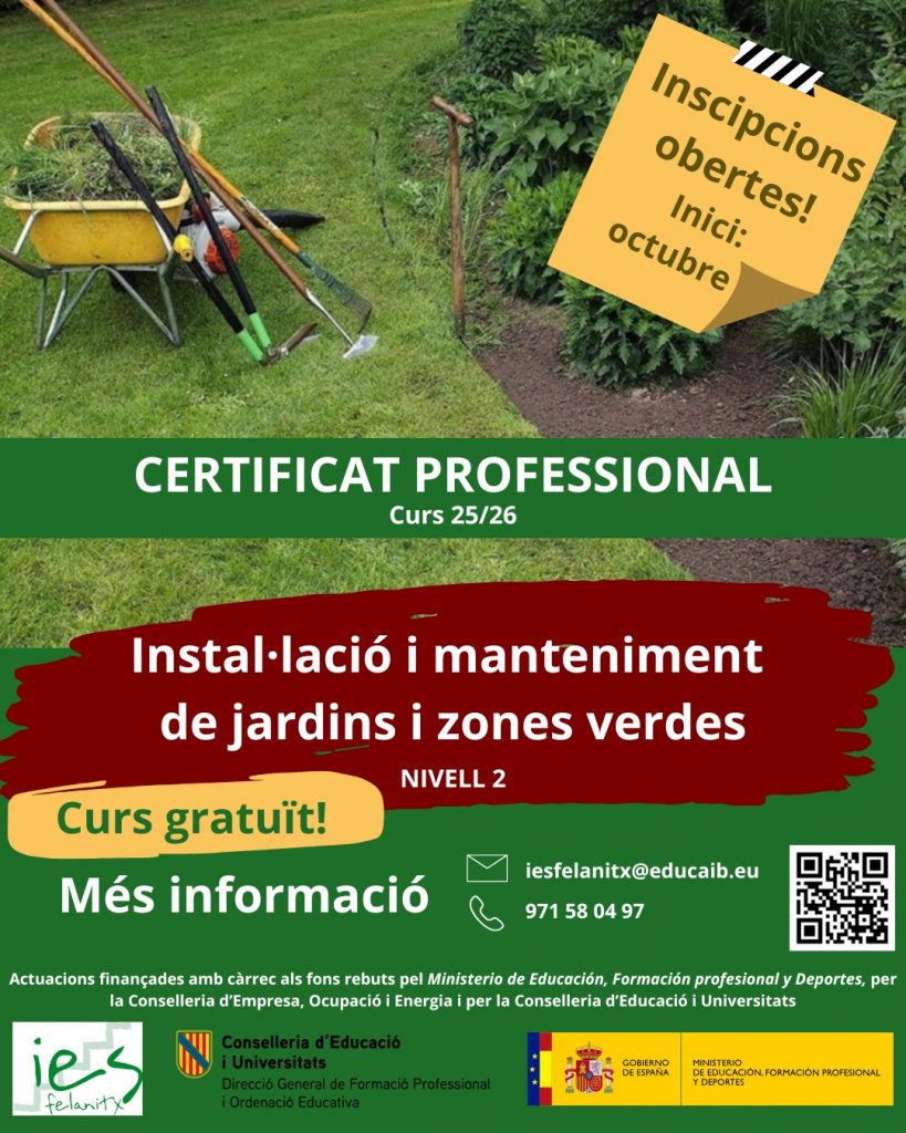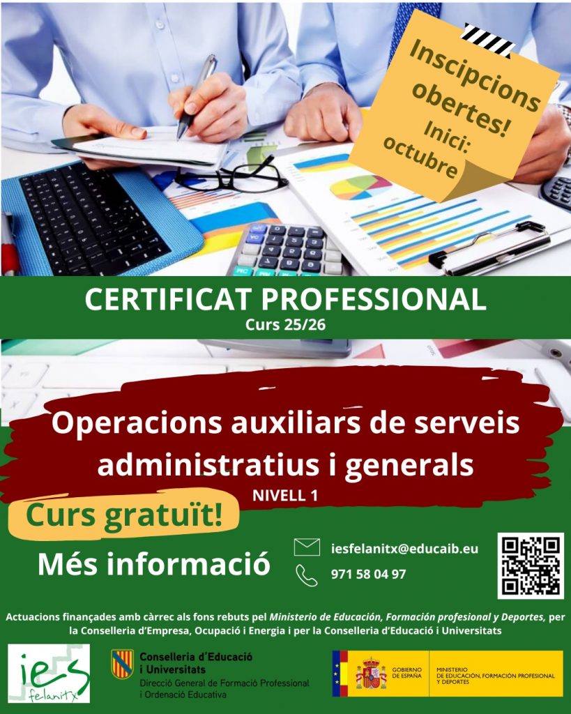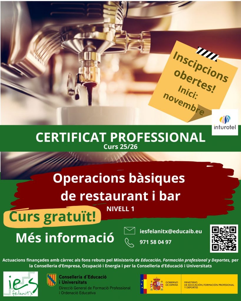 Aquest curs 25-26 l’IES Felanitx oferta els següents certificats de professionalitat: