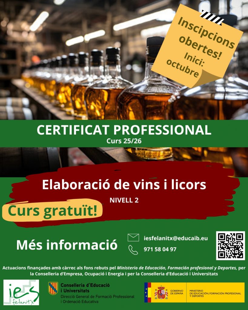 - INAH0109 – Elaboració de vins i licors (Nivell 2)